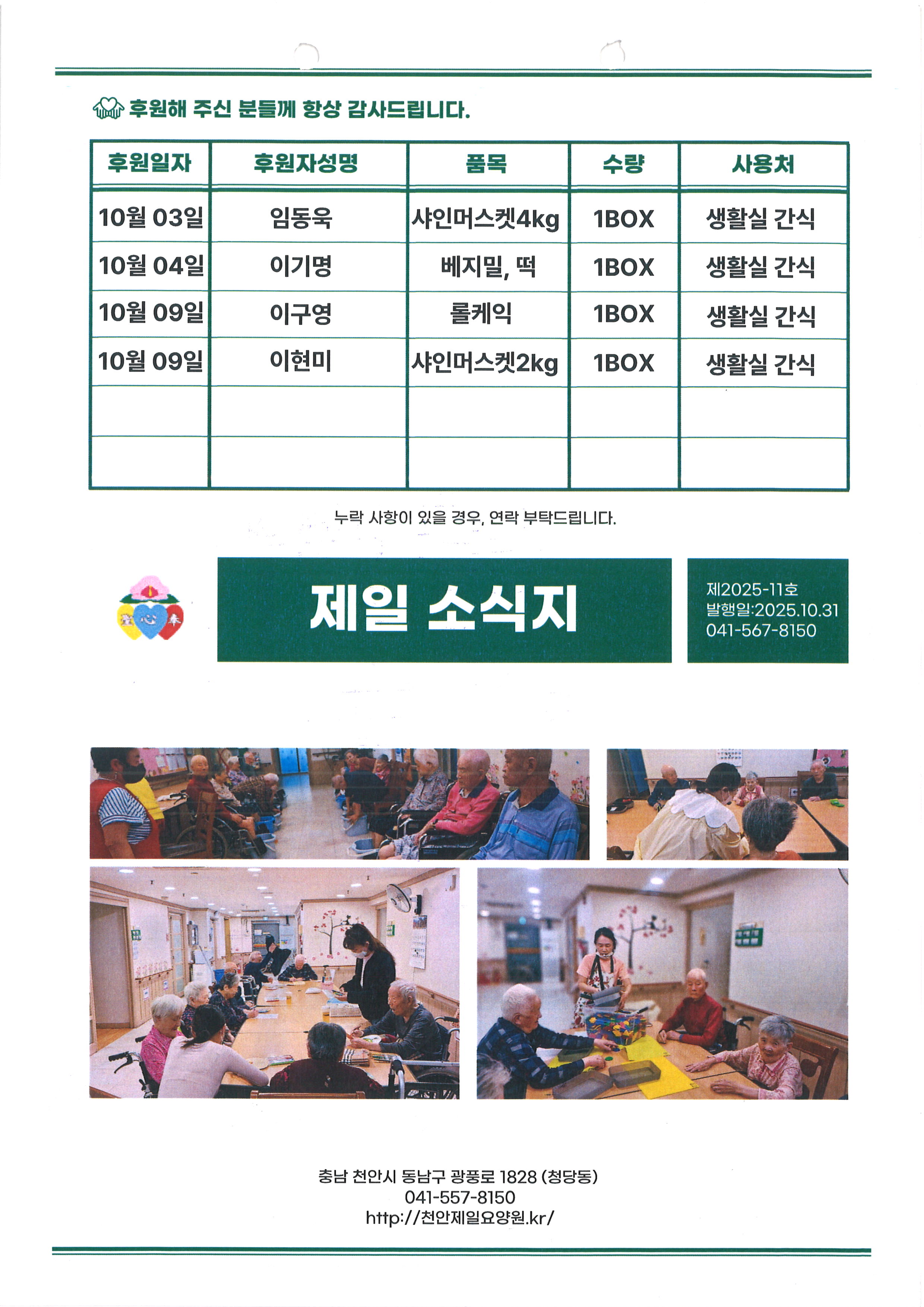 11월 천안제일요양원 안내 및 소식지
