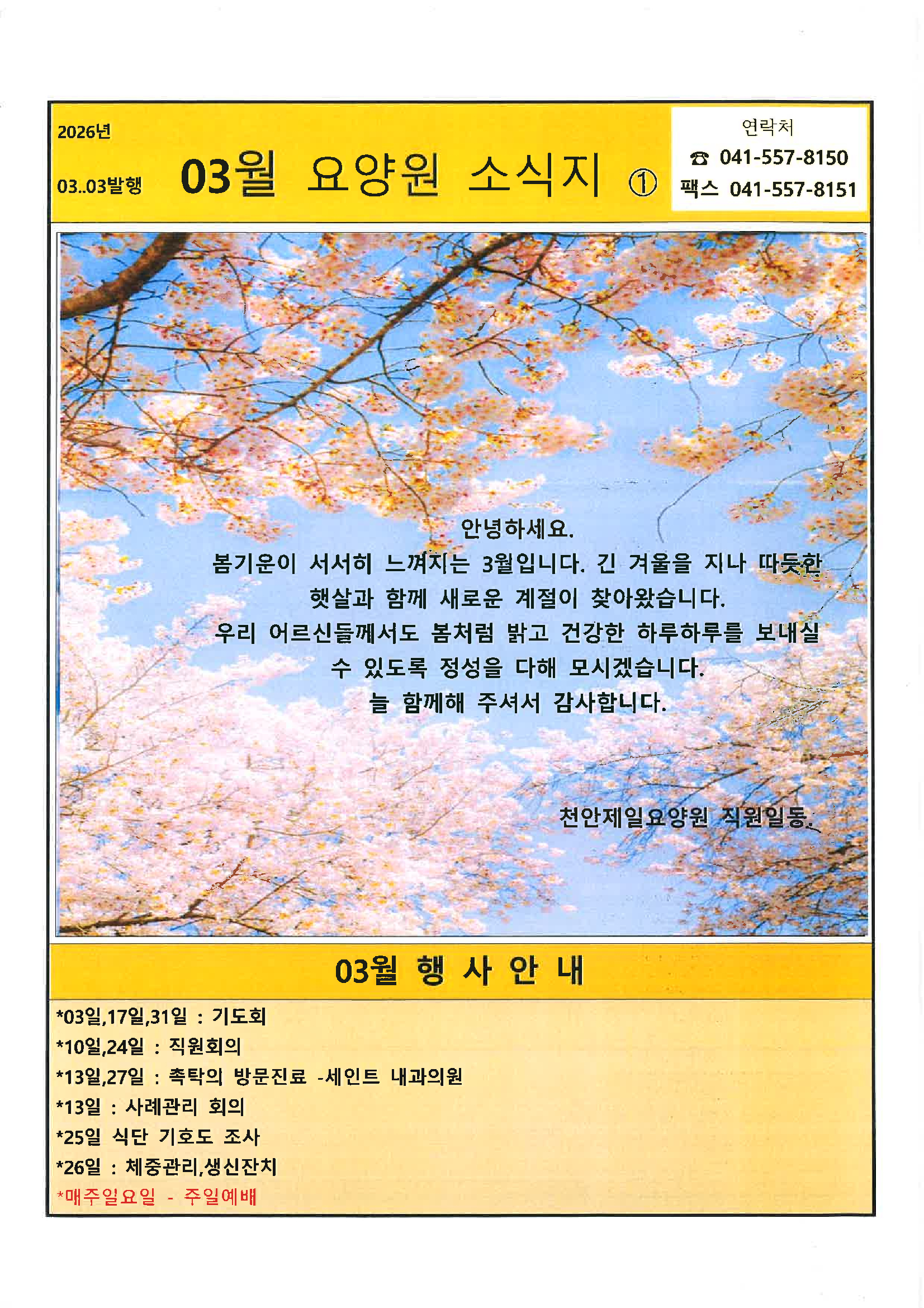 2026년 02월 천안제일요양원 안내 및 소식지