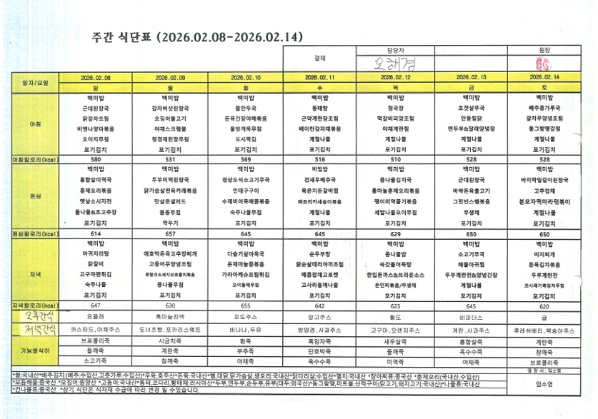 2월 2째주 식단표