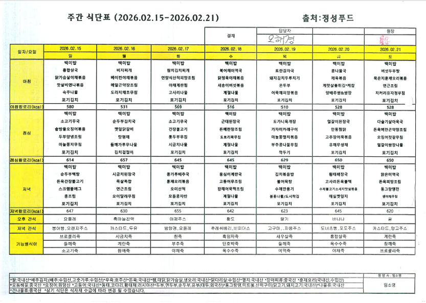 2월 3째주 식단표