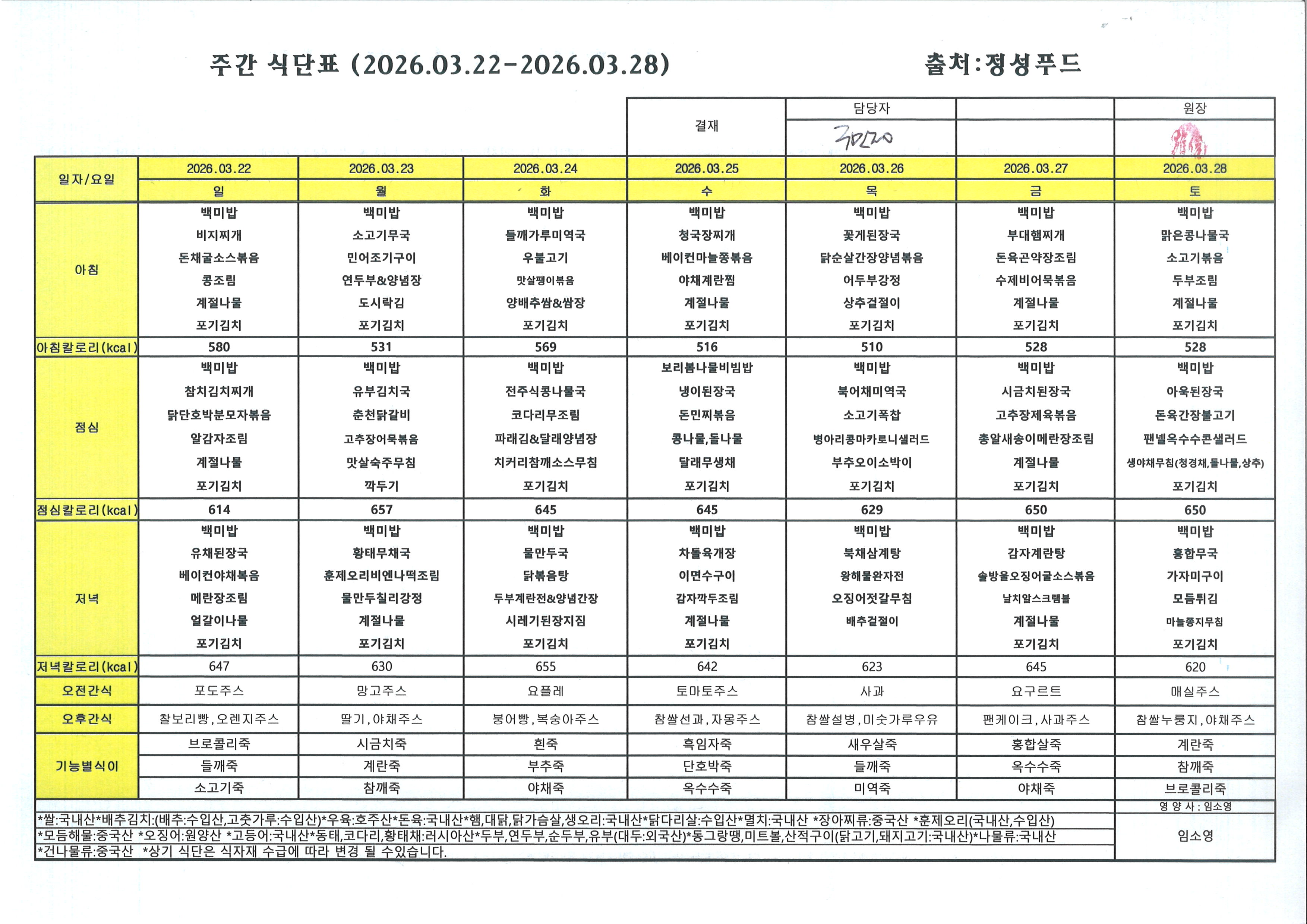 03월 셋째주 식단표